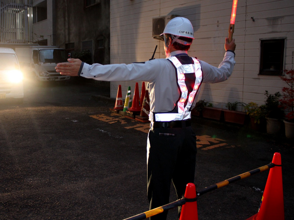 主に、車道や歩道を塞ぐ道路工事やイベント開催時に自動車や歩行者の誘導を行います。他にもショッピングモールや大型商業施設などで、駐車場内の車両の誘導や、駐車場出入口での歩行者の安全確保も致します。